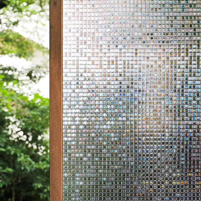 KTJ 窓用フィルム ガラスフィルム ガラスシート 目隠しシート めかくし 遮光 断熱 UVカット 飛散防止 装飾シート DIY 3D立体表面 インテリア ベランダ 浴室 プライバシー保護 省エネ (44.5x200cm, 小モザイク)