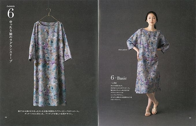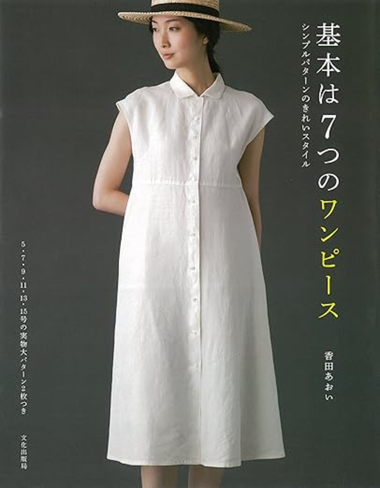 自身のソーイング教室の生徒さんからの要望も大きい、みんなが大好きなワンピースを基本にしてデザイン展開しました。さらっと着られるコンビネゾン、ジャンパースカートもワンピースの仲間入りさせて、基本の7つのワンピースから全25点のご紹介。香田あおいさん独特の簡単部分縫いの写真解説つきです。6サイズ展開の実物大パターン。