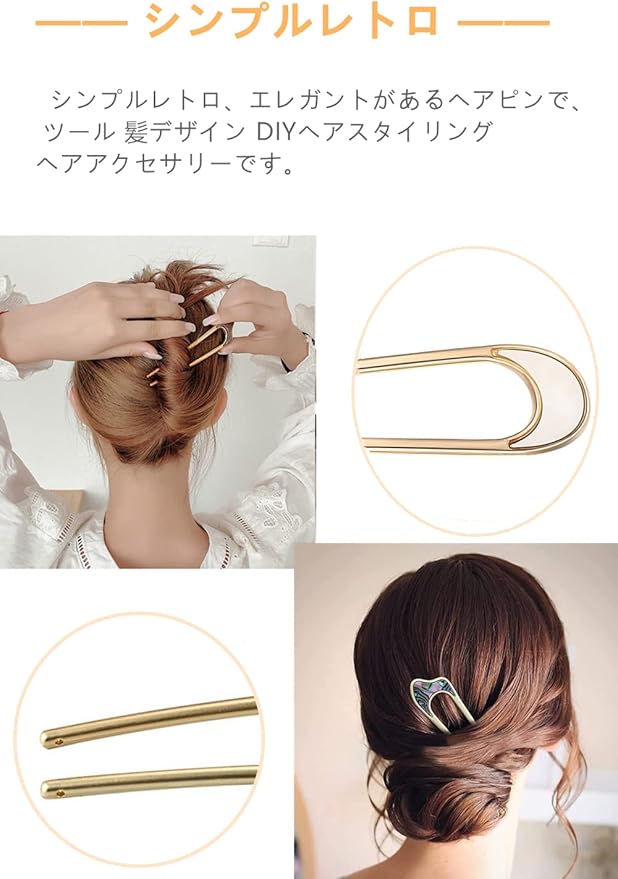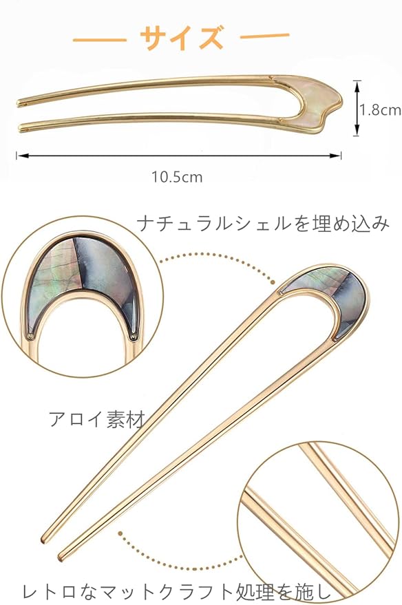 ❤【パッケージ内容】かんざしUピン2色4枚入り、サイズ:2 10cm。とても滑らかで、慎重に磨き、強くて丈夫で、髪に優しいです。