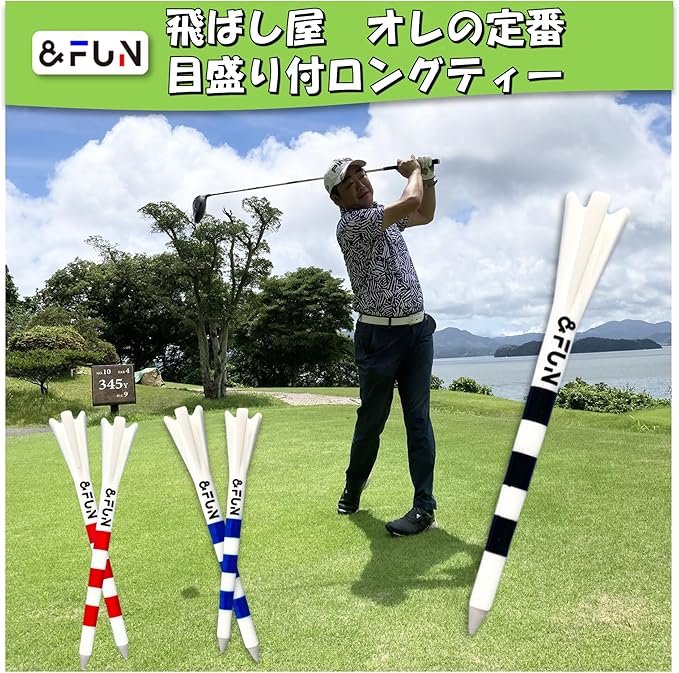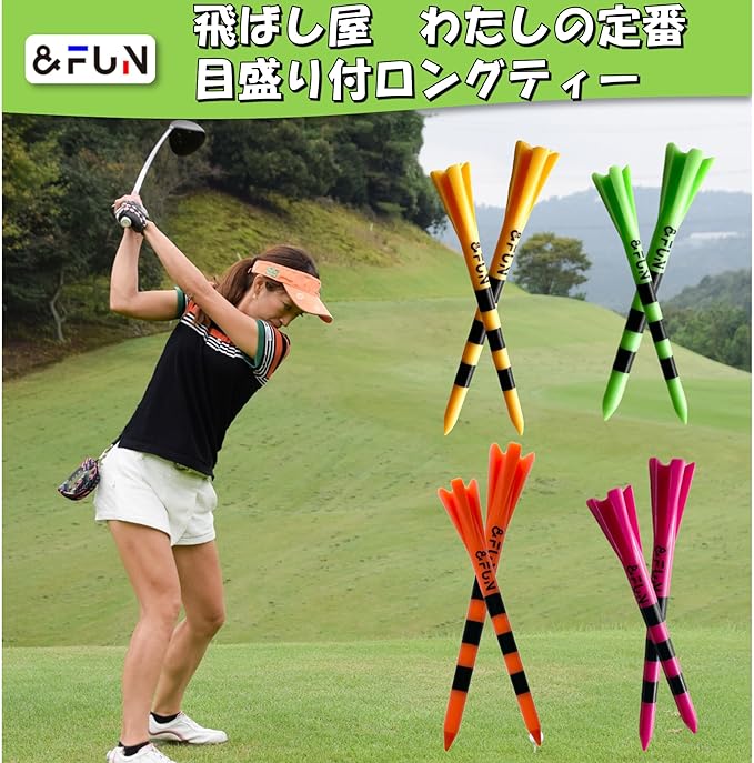 &FUN(アンドファン)ゴルフティー ロングティー 83mm 20本入 目盛り付 飛ばし屋 高さ調整簡単