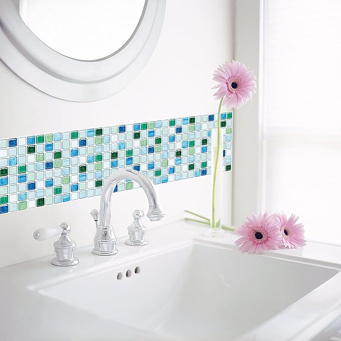 MORCART タイルシール 防水 耐熱 キッチン 洗面所 トイレ DIY 家具やアイテムの装飾 タイルシート 壁紙シール 3D リメイクシート (25x25cm, 20枚, モザイク・レイクブルー)