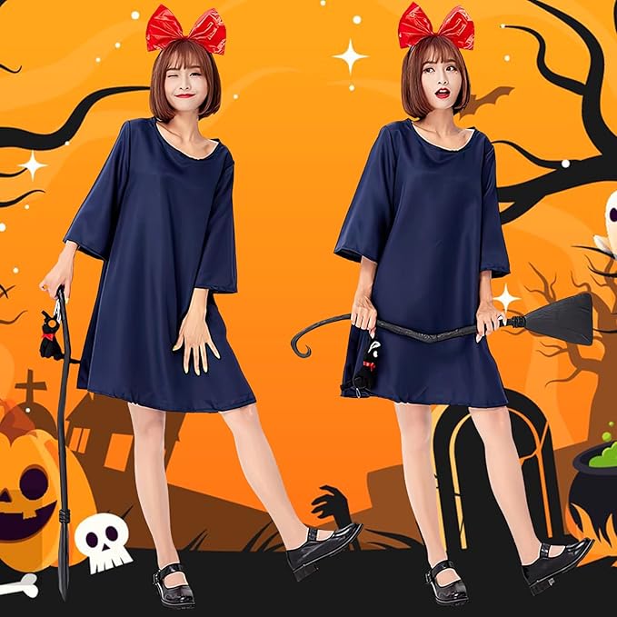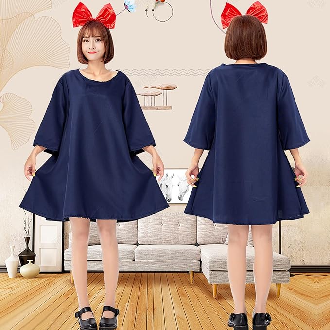 [Maazusa] 魔女 コスプレ キキ風 ワンピース レデイーズ コスプレ 変装 かわいい 宅急便 仮装 コスチューム アニメ ドレス 3点セット 萌え 可愛い レデイーズ 魔法使い クリスマス イベント 学園祭 変装パーティー 演出服 舞台劇