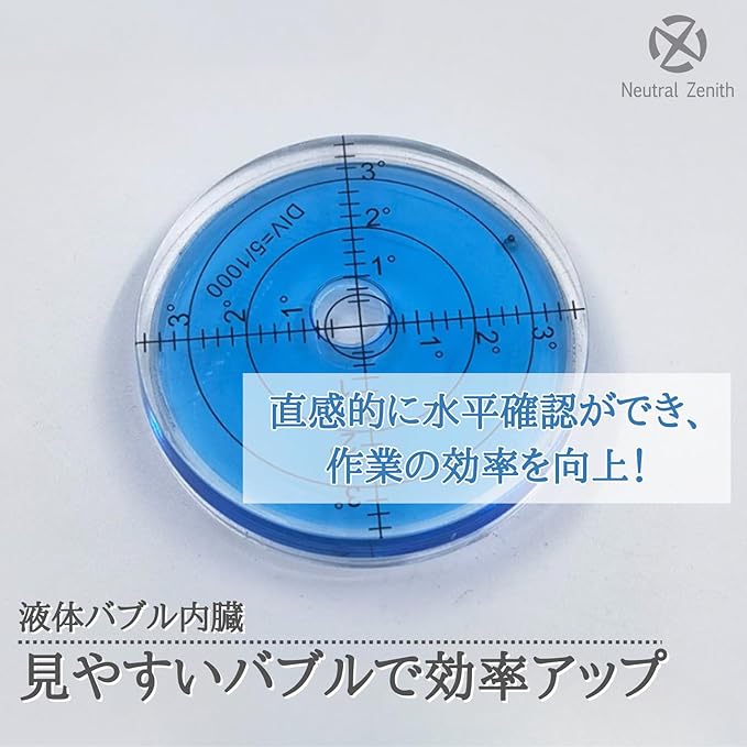 Neutral Zenith レベル 水準器 水平器 小型 測定 傾斜 丸型 精度 アナログ 目盛り付き 工具 DIY (ブルー)