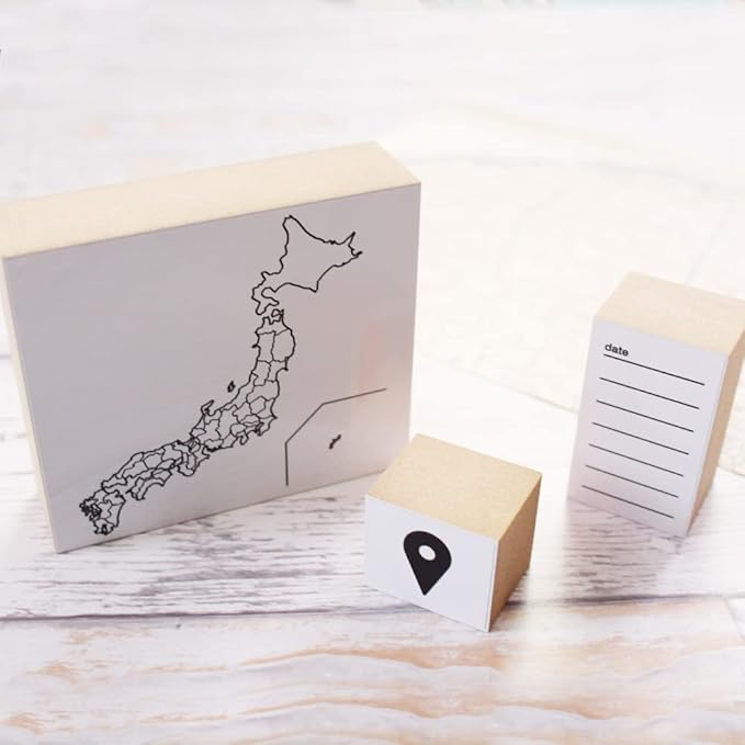 旅行記録や勉強などいろいろ使える地図のスタンプ3個セット。 行ったところに印をつけて思い出をメモしたり 勉強や記録につかったり、いろいろな使い方ができます。おしゃれなデザインと手頃な価格が魅力です! 素材には天然ゴムとスタンプの台木には廃材や木くずなどを使用し環境に配慮しています。 シンプルな使い心地です。全て日本製で1つ1つ手作りで制作しております。 シンプルでかわいいパッケージ。プレゼントにもどうぞ。