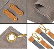 サイズ:幅約68cm、高さ約78cm、ベルト長さ約150cm 素材:キャンバス(綿帆布)重さ:約240g撥水加工を施した綿帆布は生活防水程度の撥水性能があり、少しの水であれば弾いてくれるため浸み込みにくくなっている防水エプロン!