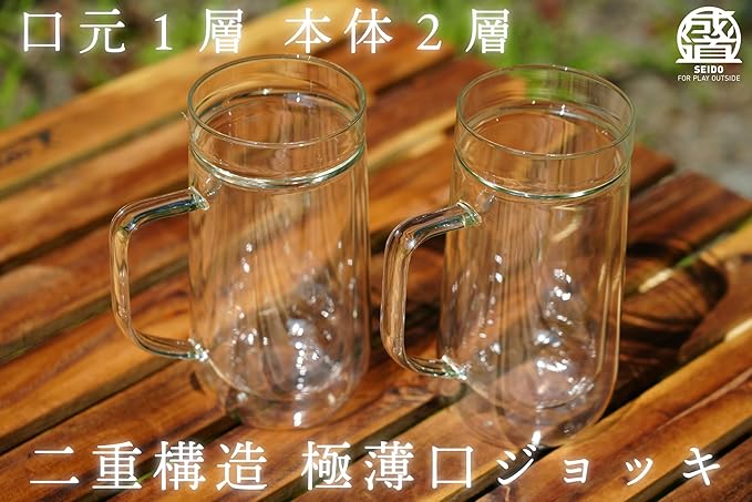 SEIDO ダブルウォール ジョッキグラス ビールジョッキ ビアジョッキ 二重構造 口元一層 耐熱グラス 電子レンジ対応 食洗器対応 ギフト 結露しにくい 水滴がつきにくい 450ml (2)