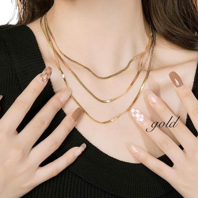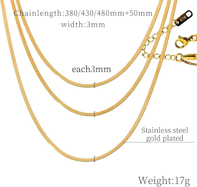 [Galant] スネークチェーン ネックレス 金属アレルギー対応 サージカルステンレス 3連ネックレス1mm/1.5mm/3mm幅 3mm 3 K18コーティング ゴールド シルバー おしゃれ
