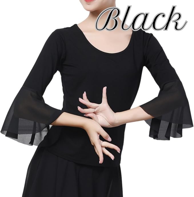 [Belle Iza Bella] ダンス 衣装 レディース トップス 社交ダンス モダンダンス 大人 ヨガ ウェア 練習着 無地 フレア 袖 薄手
