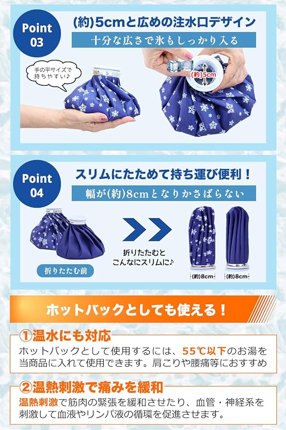 氷嚢 氷のう 2個セット 【使い勝手が良い M+Mセット L+Lセット】大口径 ひょうのう アイスバッグ スポーツ 氷枕 氷まくら アイシング(ネイビースノー M)