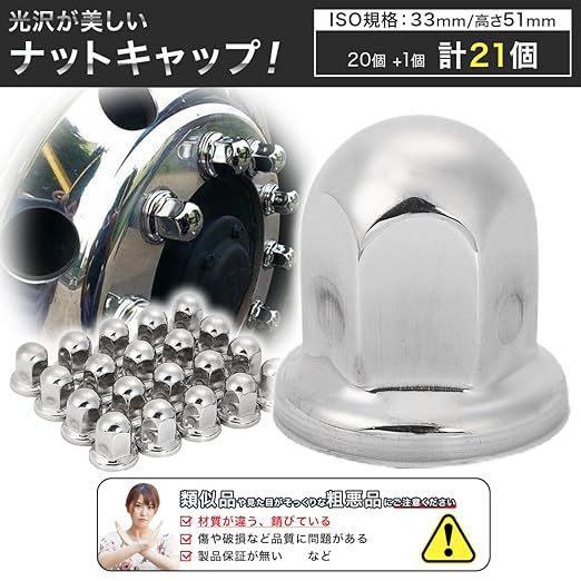 【光沢が美しいナットキャップ】 ナット キャップ カバー ISO 33mm 高さ51mm 20個 +1個 21個セット ミドル ステンレス 丸型 大型10穴用 デコトラ 汎用