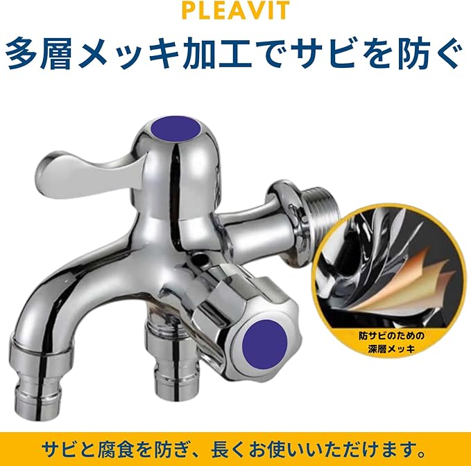 PLEAVIT 水道 蛇口 分岐 二股 二口 双口 ワンタッチ 洗濯機 水栓 屋外 切り替え 継手 (青)