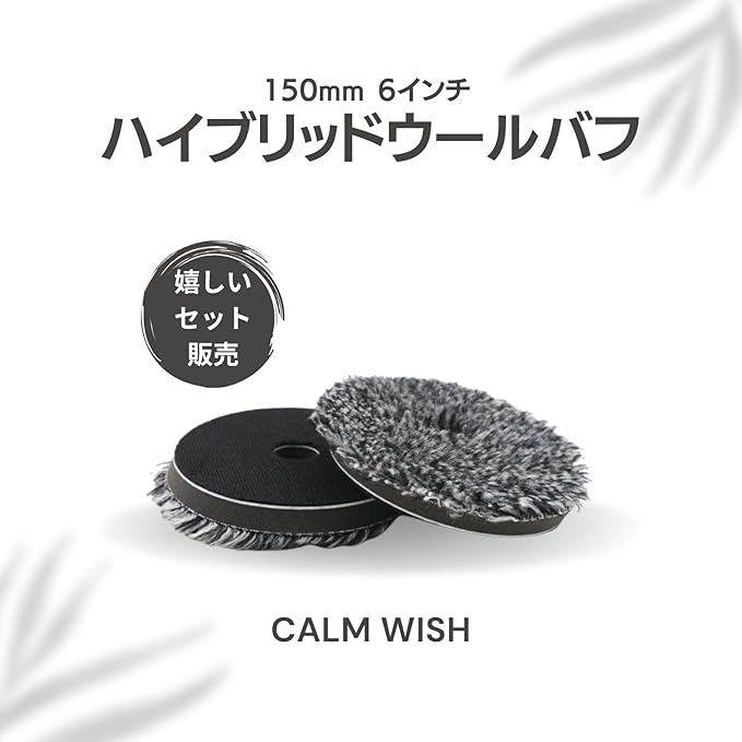 calm wish ウール バフ ポリッシング ポリッシャー 車 ハイブリッド ワックス 洗車 ロング 柔らか 研磨 艶 ソフト 仕上 羊毛 パッド 2枚