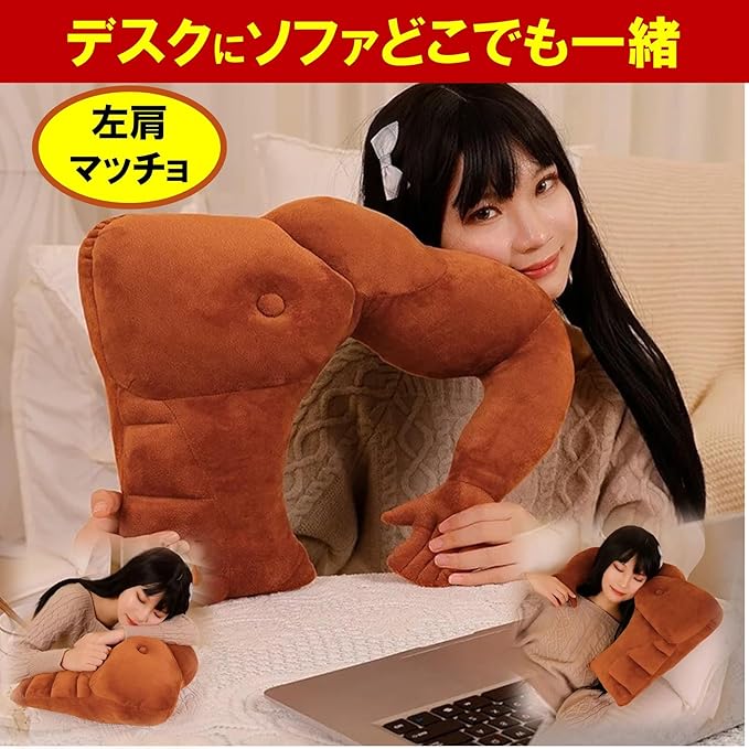 NOELAMOUR 抱き枕 腕枕 筋肉 マッチョ クッション 癒し プレゼント おもしろ 柔らか (左肩マッチョ/45cm)