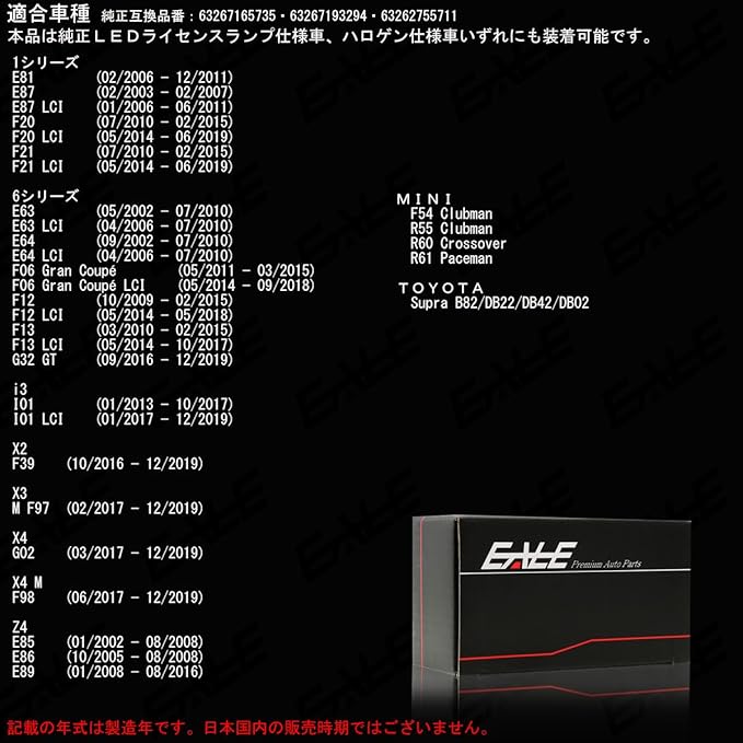 多くのBMWに採用されている純正ライセンスランプと同形状に設計し、 幅広い車種に取り付けが可能です。