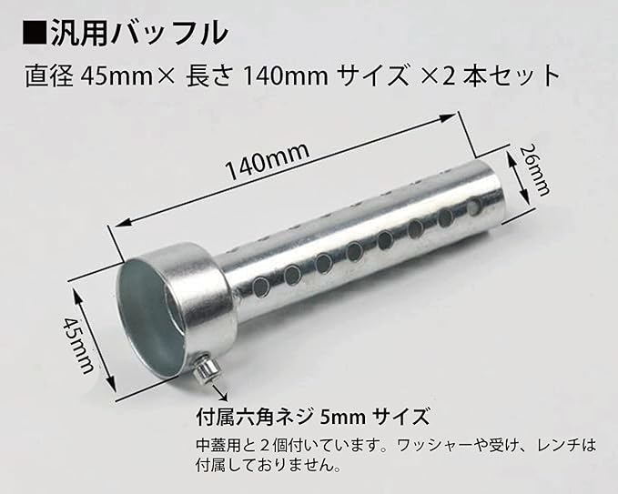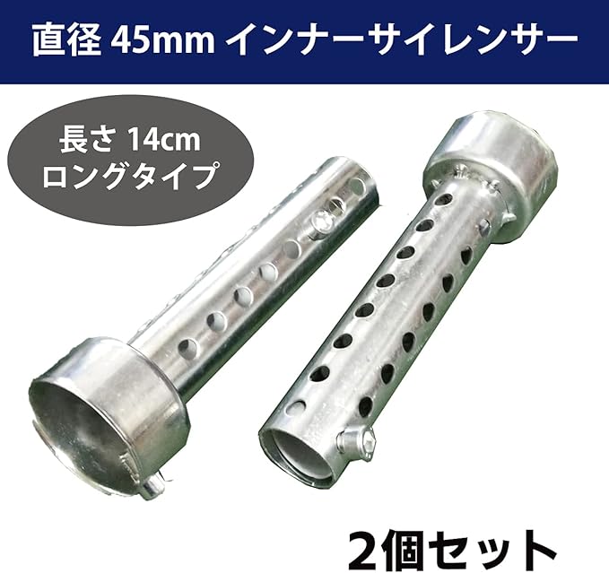 ヒロワールドトレード インナー サイレンサー 2本セット 45Φ 汎用 タイプ 中蓋付 消音器 バッフル バイク ロング 140mm (45mm)