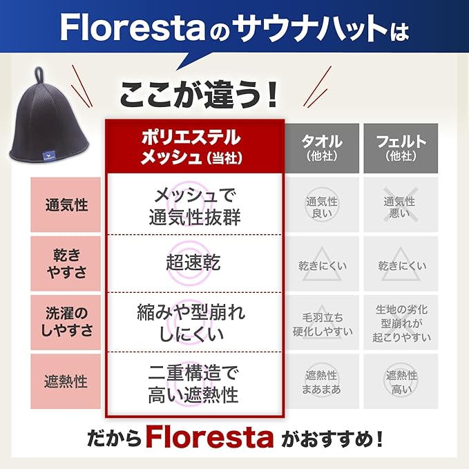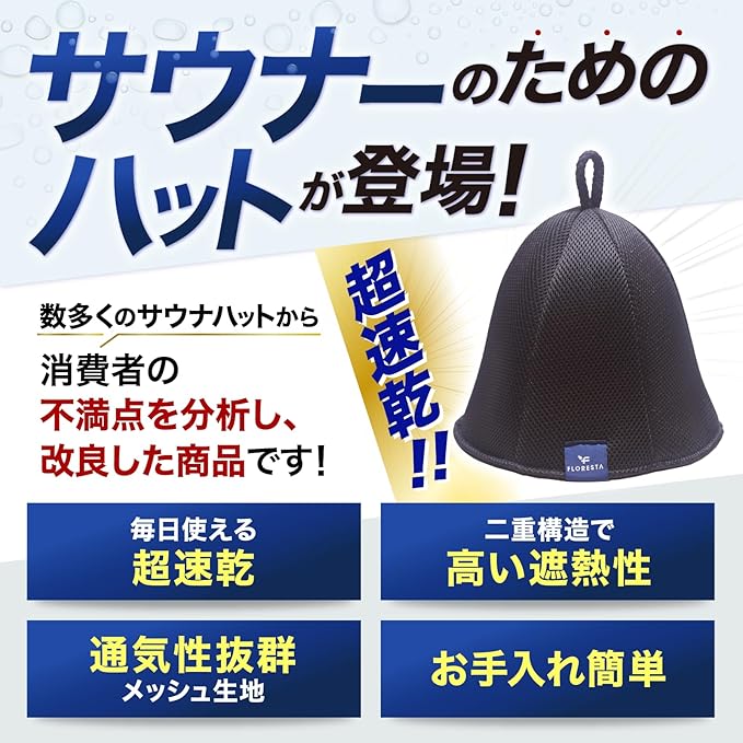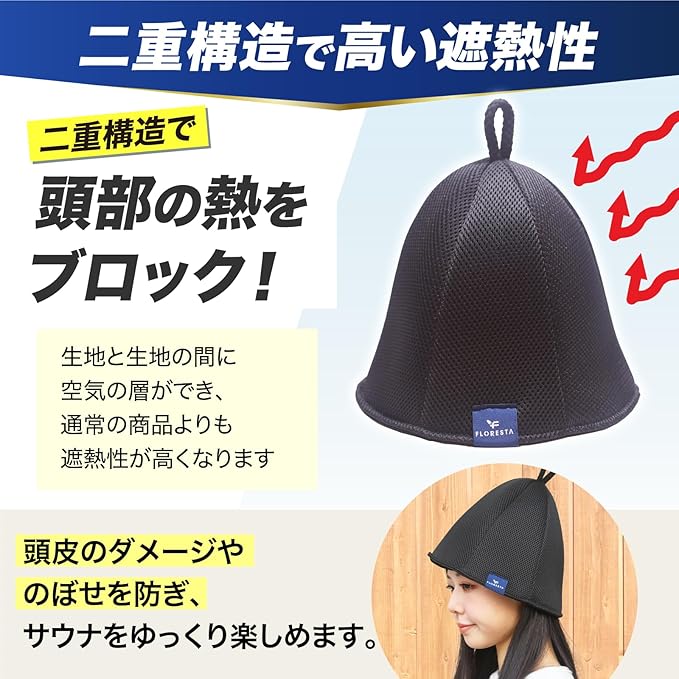 [floresta] サウナハット ポリエステル 超速乾 二重構造 大きめ 深め 洗える メンズ レディース サウナ用品 サウナグッズ