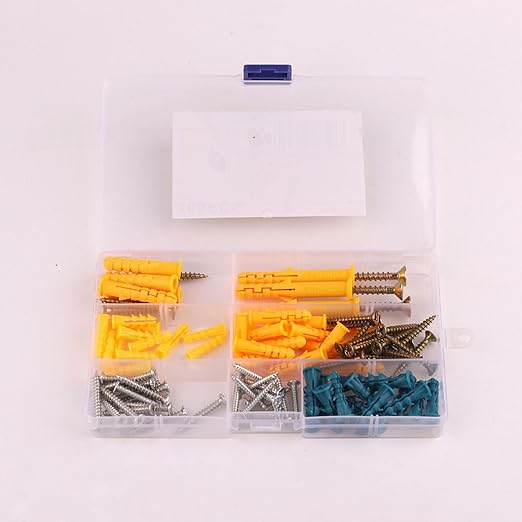【セット内容】合計100pcs。拡張ウォールプラグアンカー50個、セルフタッピングネジ50個入り。 収納ボックス付き。