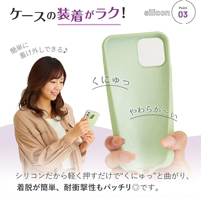極上の手ざわりで手にしっかりフィット。耐衝撃性が高く、着脱も簡単なシリコンケース。指紋などの汚れがつきにくく、お手入れも簡単です。
