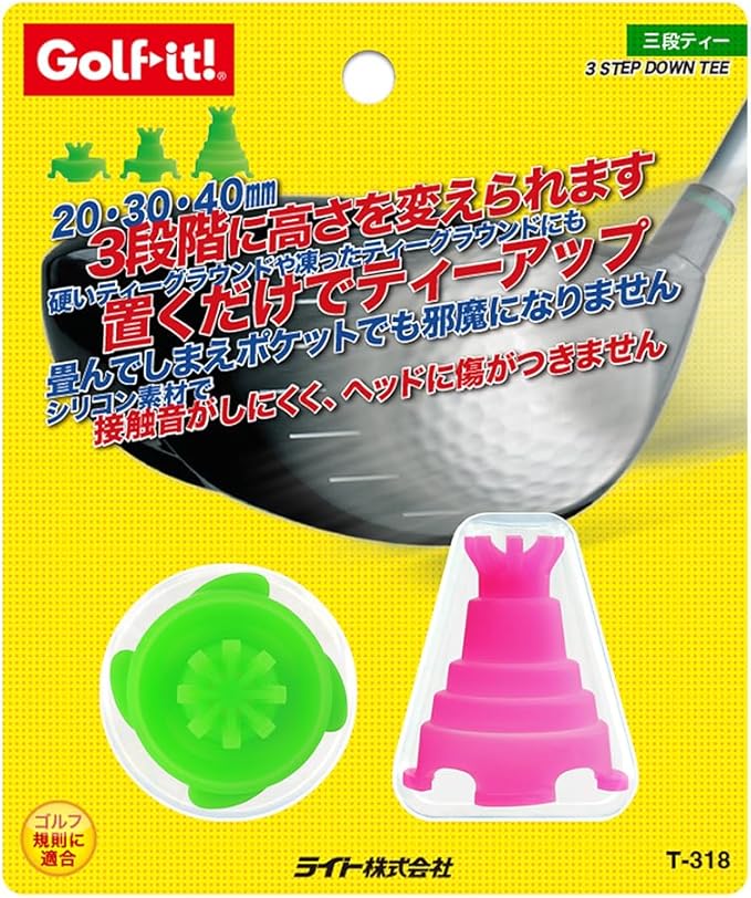 ●バベルの塔のような形状のシリコン製ティーは、20,30,40ミリの3段階に高さを変えられます ●硬いティーグラウンドや凍ったティーグランドにもポンと置くだけでティーアップ ●使わないときは、畳んでしまえポケットでも邪魔にならずコンパクトに収納できます ●シリコーン素材を使うことにより、接触音がしにくく、ヘッドにも傷がつきません 材質:シリコン樹脂 ●2個入 ●中国製
