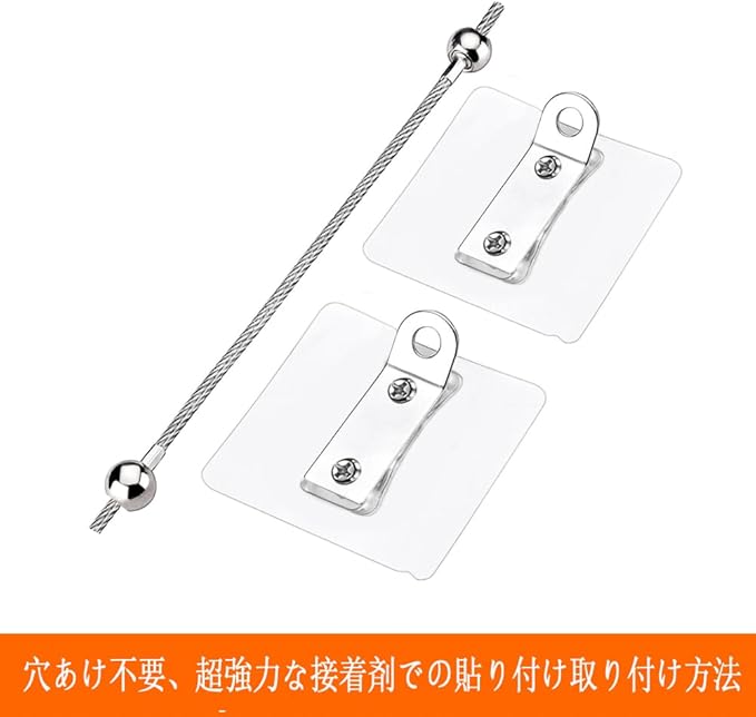 【素材&サイズ】ステンレス鋼、ポリカーボネート、ワイヤーロープ径1.5mm、長さ250mm、ワイヤーの最大耐荷重は100kg、1個セット。