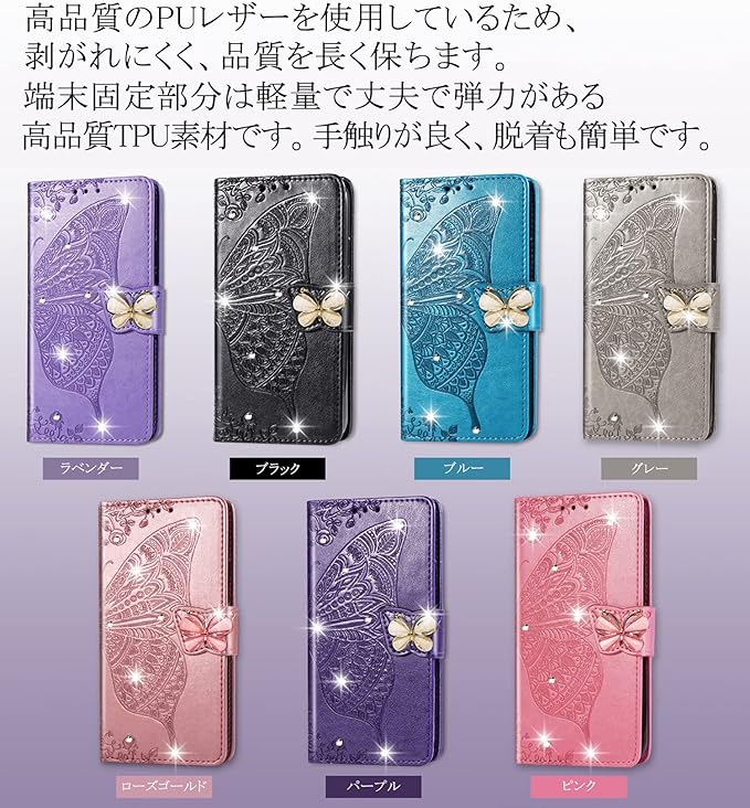 【素材】高品質なPUレザーを採用した手帳型 ケース、キズや汚れに強く、放熱性や耐衝撃が良い。端末固定部分は柔軟のあるTPU素材を使用。手触りが良く、脱着も簡単です。