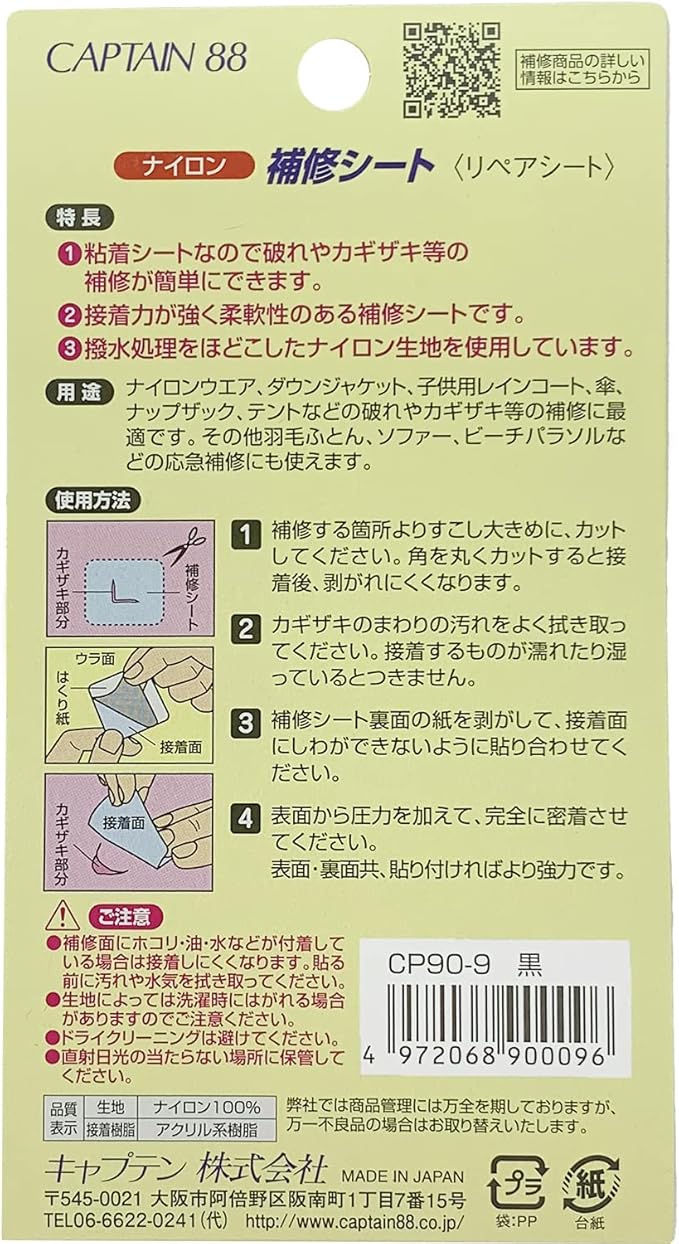 CAPTAIN88 キャプテン ナイロン 補修 シート 強力 粘着 7cm幅 30cm #9 黒 CP90