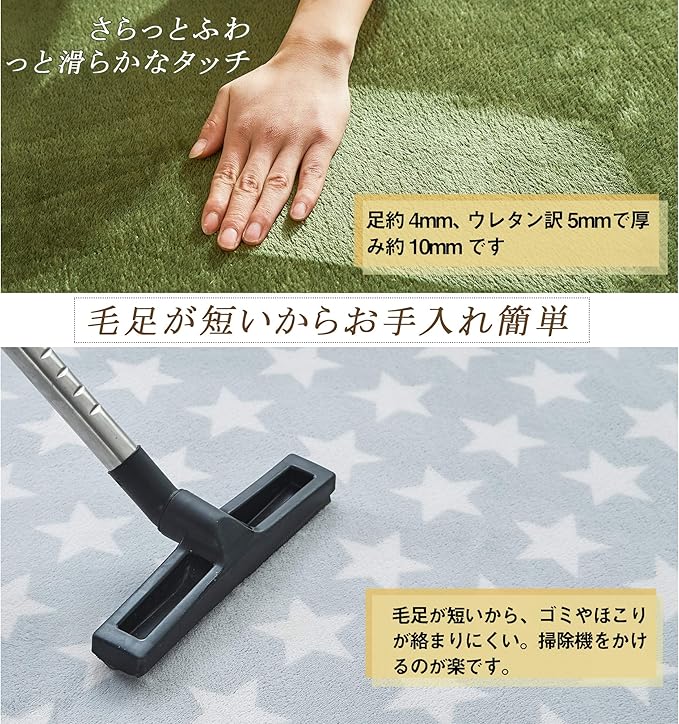 【機能】極細繊維のマイクロファイバーを使った、ふわふわ柔らかな肌触り、通気性が高いです。カーペットが軽量で折り畳み可能、簡単に持ち運びできます。防音効果もあります。