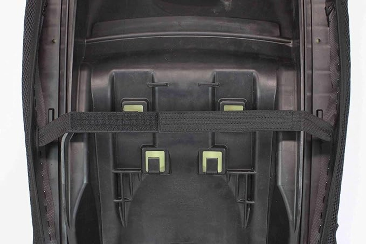 立体メッシュの座面には適度なグリップ力を確保する為、細かく編み込まれた特殊メッシュを採用。立体メッシュがヒップとシートの間に空間を作り、そこへ走行風が吹き抜けることで、不快な蒸れやシート熱の伝達を防止します。雨天時の水はけも良く、雨具への水の浸透を防ぎます。