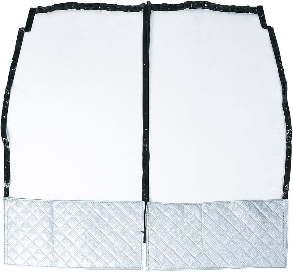 【視界確保&使いやすい設計】 透明素材で前後の視界を遮らず、後部座席からの見通しも良好。中央部はファスナー開閉式で、乗り降りや荷物の受け渡しもスムーズに行えます。デザインと実用性を兼ね備えた仕様です。