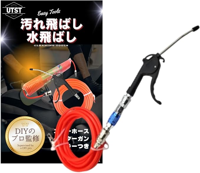 UTST エアーホース エアダスターガン 空気流量調整 エアー工具用ホース エアブローガン エアー調整 (5M+ダスター+調整)