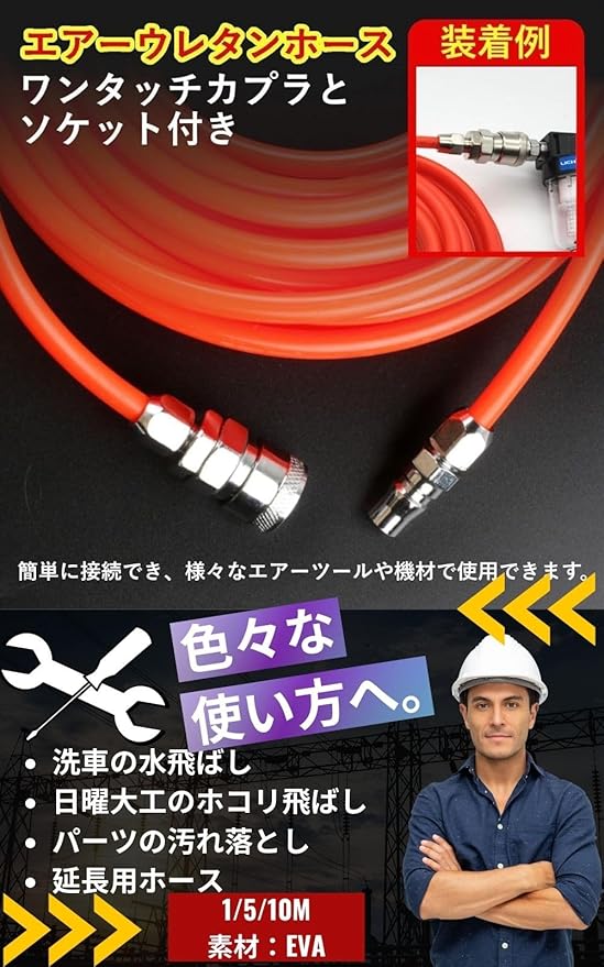 こちらのエアーコンプレッサーホースとエアーダスターガンとエアー調整のセットは、自宅・職場・オフィス・学校・工場・倉庫など色々なシーンでお使いいただけます。日曜大工や自宅洗車の水飛ばしや・ホコリ塵などの飛ばしなどエアーホース延長用とダスターガンカプラーをお使いいただける便利大工グッズセットです。