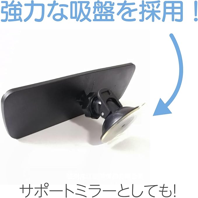 【強力な吸盤を採用!サポートミラーとしても!】 強力な吸盤により、簡単に固定することができます。吸着力が強力であり、脱落が起きにくいです。 サポートミラーとして安全な視覚確保用としてご利用いただけます。バックビューシートの状況を確認しやすいため、運転席や乗客席などに用いることができます。