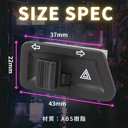 【操作方法】 スイッチの左が左ウィンカー、右が右ウィンカー、スイッチを左右にスワイプするとハザードになります。押し込むとウィンカーが消灯します。(プッシュキャンセル式)