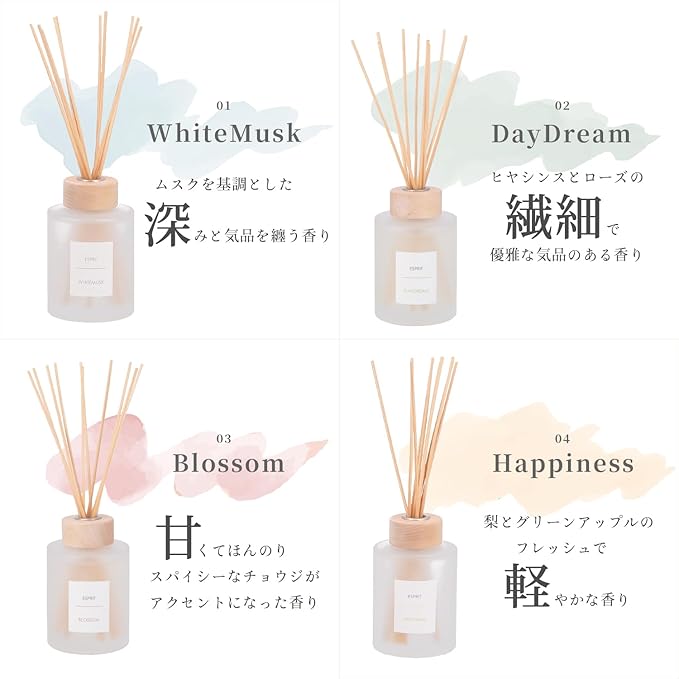 ムスクベースの深みのある高貴な香りのリードディフューザー