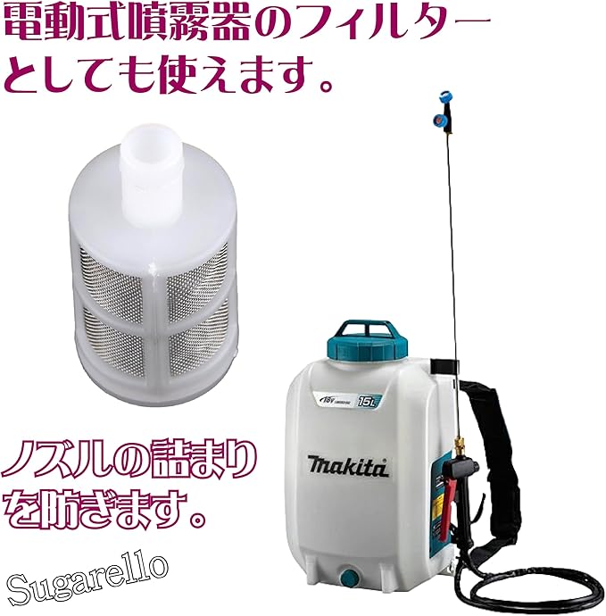水中に自然発生する藻などを取り除きますので、水槽内をいつもきれいな環境に保ちます。電動式の噴霧器のタンク内にも取り付けられますので、ノズルの詰まりを防ぎスムーズな噴霧作業ができます。