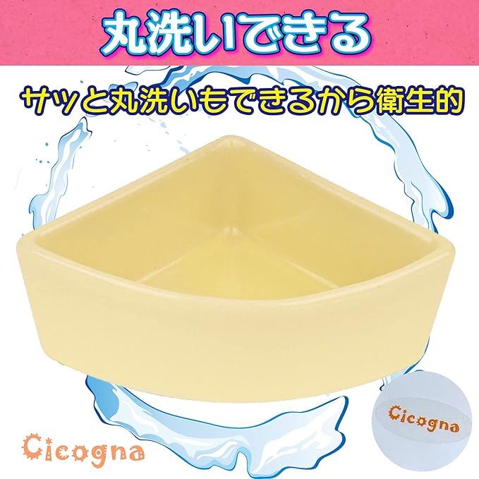 シンプル!カラフル!ペットケージの角にピタッとはまる! ハムスター ハリネズミ向けの三角フードボウル!柔らかなカラーが好評の小動物用餌入れです。モルモット、うさぎ、小鳥などのペットにもご利用いただけます。