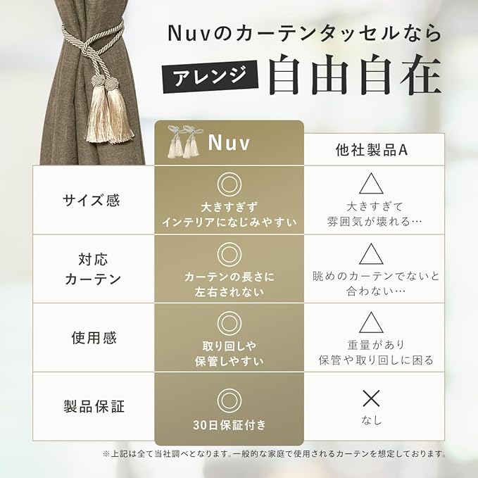 ✅️【結ぶだけで気軽に簡単】Nuvのカーテンタッセルで毎日新鮮な雰囲気のお部屋をお楽しみ下さい。