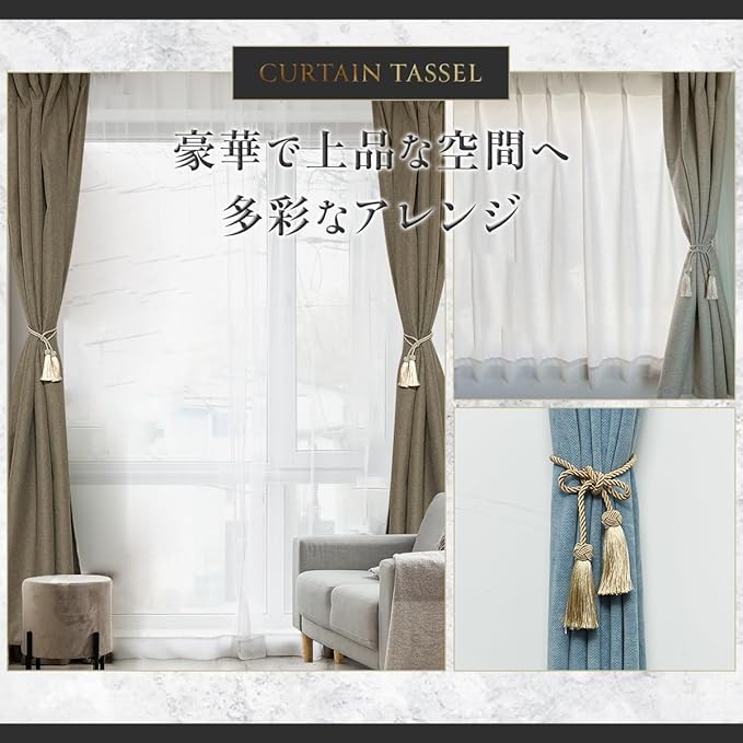✅️【主張を抑えたデザイン】遮光カーテン、厚手カーテン、サイズも問わず使用可能なタッセル。