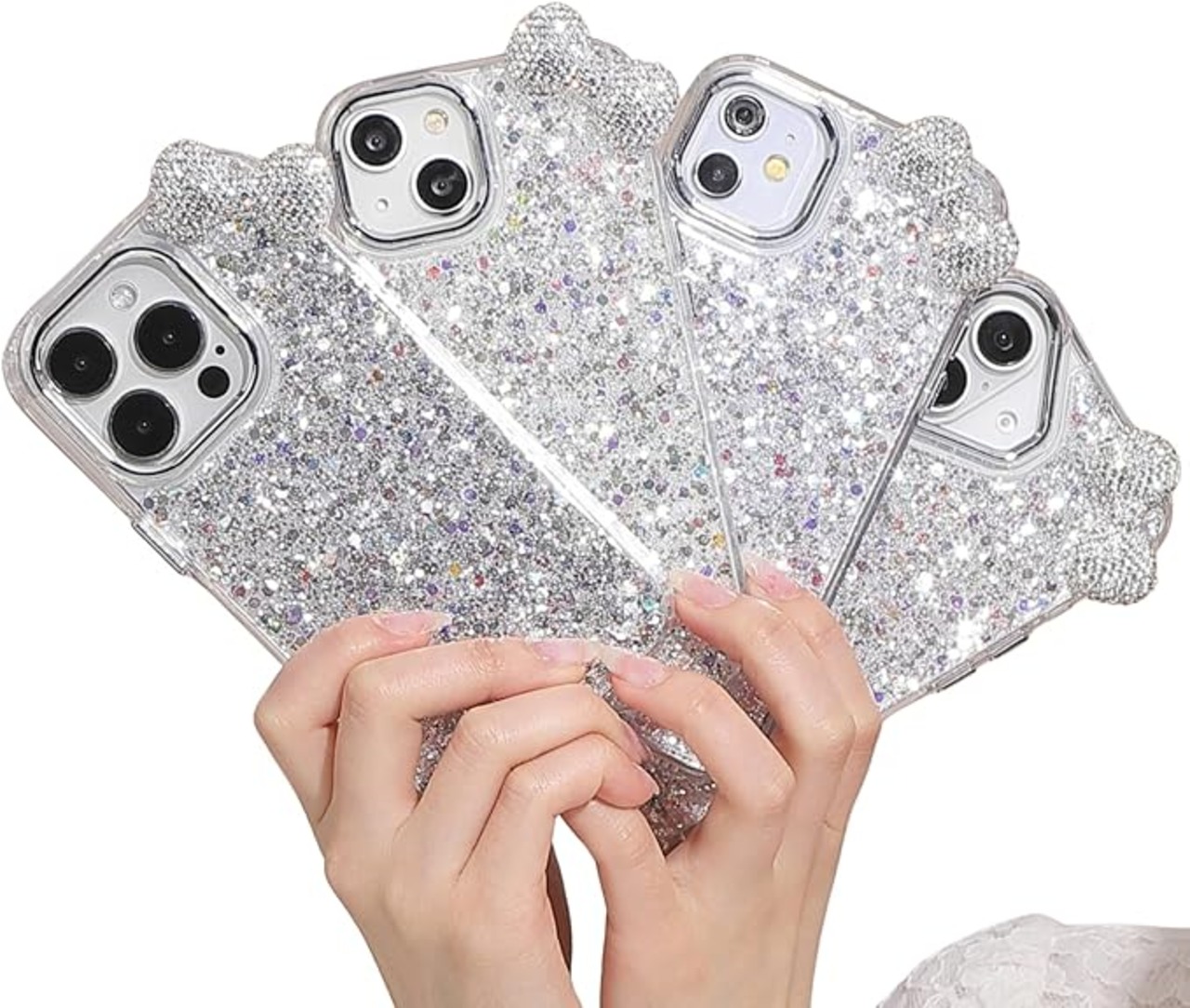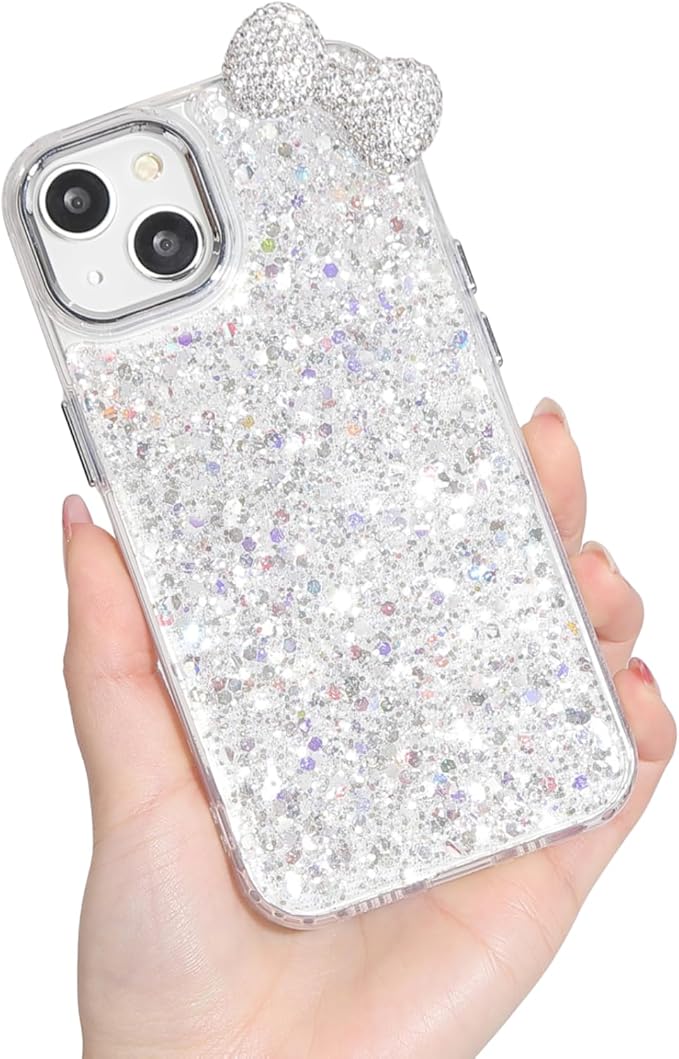 【ぎっしりラメ 立体リボンのキラキラリボンケース】 ケース全体に大小さまざまなストーンとラメを惜しみなく敷き詰めた、まばゆい輝きが魅力のデザイン。光の当たり方や角度によってキラキラと反射し、まるでジュエリーのような存在感を放ちます。カメラ周りには大きめの立体ビジューリボンをあしらい、正面・背面・斜めなどどこから見ても映える可愛さ。ラグジュアリーでありながらも可愛さをしっかり兼ね備えており、毎日のコーディネートにも気分が上がるスマホケースです✨  【上品でしっかりとしたリボン仕立て】 リボン部分には小粒のラインストーンを丁寧に一粒ずつ配置し、きらめきを逃さない仕上がりに。しっかりと装飾を施しているため、見る角度を選ばず常に美しい印象をキープします。接合部の処理やカットも丁寧で、チープに見えることが一切なく、大人っぽく高見えするのがポイント。可愛く仕上げられたリボンが、全体のクオリティをぐっと引き上げてくれます。  【壊れにくいリボン構造で安心】 かわいいだけじゃない、実用性も大切に。リボンの土台部分には耐久性の高い強化素材を使用し、しっかりと固定する設計にすることで、落下時や引っかかりにも強くなっています。装飾系ケースにありがちな「リボンがすぐ取れた…」というお悩みにも応えられる仕様で、長く愛用できる安心感が魅力です。日常使いはもちろん、イベントや旅行などでも安心して持ち歩ける耐久性を実現しました。  【手にフィットする快適な使い心地】 ケース本体にはしなやかで衝撃吸収性に優れたTPU素材を採用し、しっかりとiPhoneを保護。軽量設計で持ちやすく、長時間使っていても疲れにくい仕様です。さらに、ラメの凹凸が滑り止めとしても機能し、うっかり落とす心配も軽減。可愛いだけでなく、実際に使ったときの「ちょうどいいフィット感」を重視しており、毎日の使用でもストレスなくお使いいただけます。  【あんしんサポートで長く使える】 日本人スタッフによるカスタマーサポートが24時間365日体制で対応しているので、もしケースに破損や初期不良などを発見した場合でも、すぐにご相談いただけます。交換や修理も含め、アフターケアに力を入れているため、長く安心して使っていただけるのが嬉しいポイントです。デザイン性や機能性だけでなく、購入後のフォローまで充実しているからこそ、初めてのクリアケース選びでも難なくお求めいただけるでしょう。大切なスマホを守りながら、自分らしいおしゃれを楽しむための“相棒”として、ぜひこのクリアケースをお試しください。