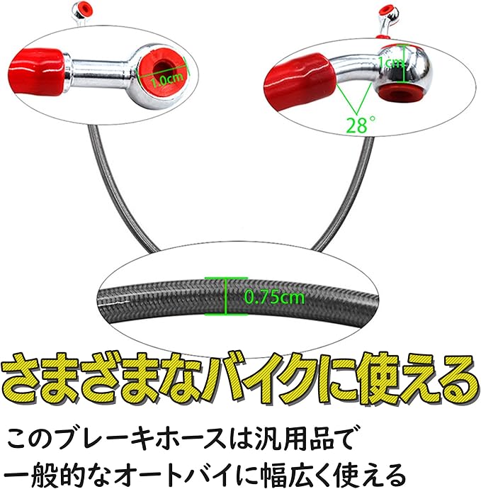 さまざまなバイクに使える:このブレーキホースは汎用品のため、さまざまなバイクに使用することができます。一般的なオートバイに幅広くお使いいただけます。