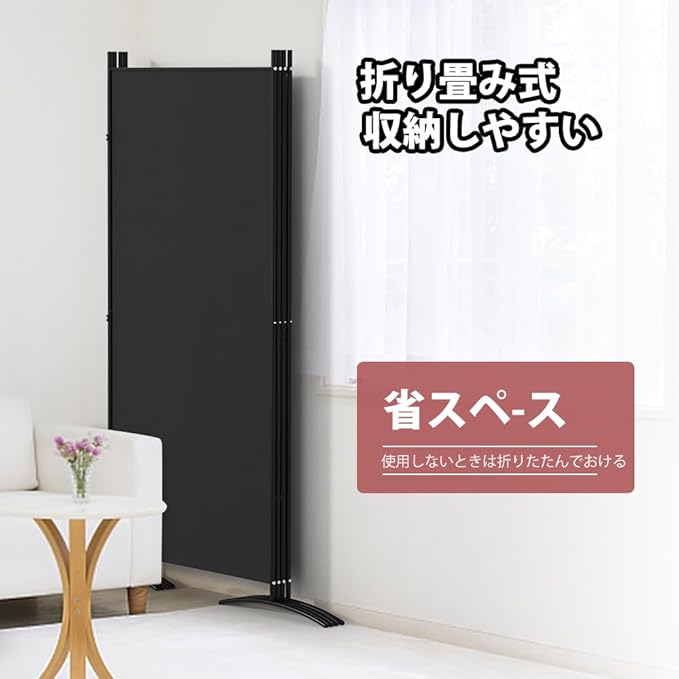Kokorona パーテーション 間仕切り 4連 カバーストリップ付き 高さ180cm 幅345cm 衝立パーテーション スクリーン 折りたたみ 布タイプ 屏風 目隠し 区切り 衝立 軽量 オフィス 事務所 ブラック
