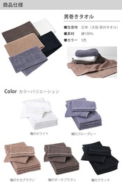 【フェイスタオル 5枚セット】生産地:日本(泉州タオル) 素材:綿100% サイズ:約34cm 90cm カラー:俺のホワイト、俺のブルーグレー、俺のモカブラウン、俺のダークブラウン、俺のブラック セット内容:フェイスタオル 同色5枚、またはアソートメント5枚(俺のホワイト+俺のブルーグレー+俺のモカブラウン+俺のダークブラウン+俺のブラック)