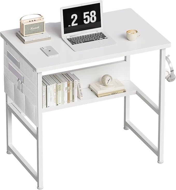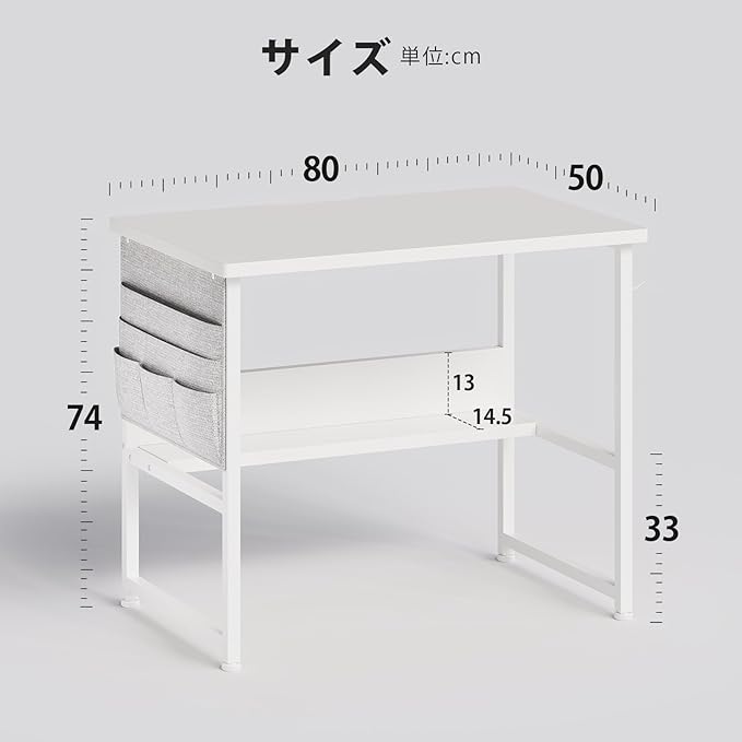 YeTom デスク パソコンデスク 机 pcデスク 幅80cm 勉強机 収納袋付き学習机 オフィスデスク 作業机 モニターアーム取付対応 組立簡単 白い