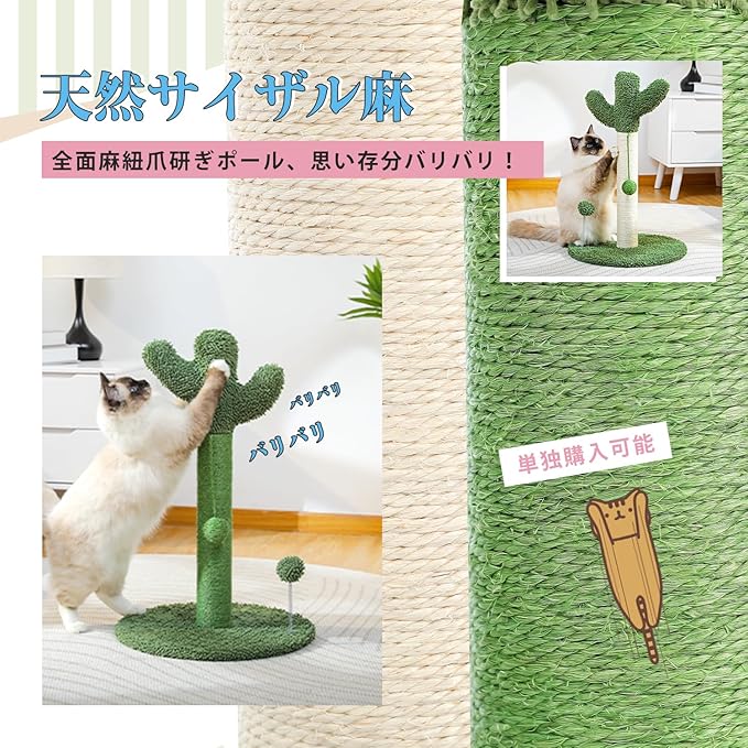【部品単独購入可能】高品質の天然サイザル麻紐ポール、単独購入も可能なので、長時間の使用とともにボロボロになっても心配なし!