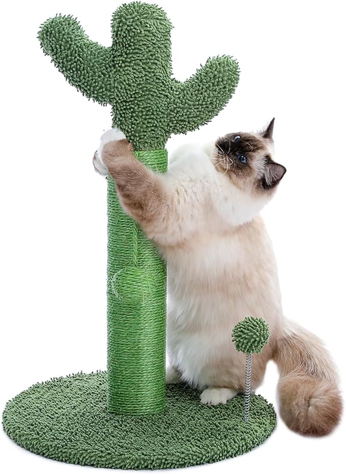 PAWZ Road 猫 爪研ぎ 縦型 爪とぎポール サボテン 大型猫 麻紐 キャットタワー 低め 猫タワー ねこのおもちゃ 省スペース 運動不足解消 猫の遊び場 - 高さ65cm グリーン