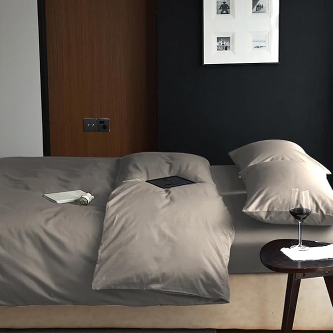 布団カバー 3点セット シングル サテン 光沢 艶感 布団かばー ベットカバー セット 無地 8ヶ所ヒモ付き 洗い替え 美肌 美髪 ダークグレー