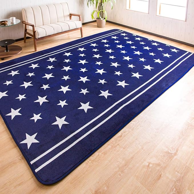 システムK ラグ カーペット 肌に優しいふんわり感 子供に安心の抗菌・防臭・防ダニ 200 300cm フランネルラグ 洗える 滑り止め オールシーズン 床暖房 ホットカーペットOK 絨毯 約4畳 スターネイビー