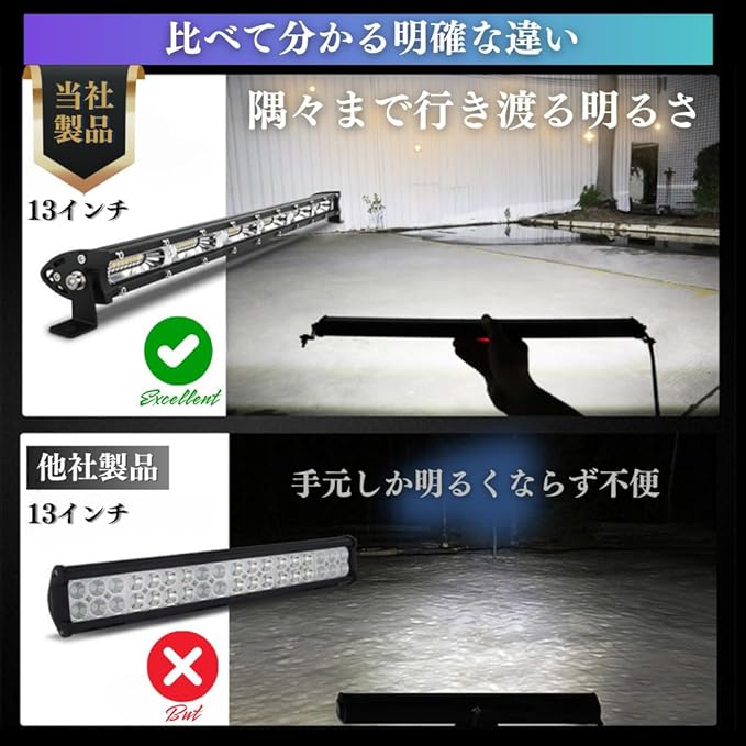 MAKUMINORS LEDワークライト ライトバー 12V 24V デイライト スポットライト フォグランプ トラック 車 作業灯 投光器 車幅灯 13インチ 2個セット