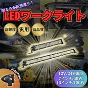 12V、24V兼用の非常に明るいLEDワークライトバー(60w/120w)になります。普通車はもちろん、 オフロード車、トラック、ダンプ、船舶、重機、農作業、トラクター、コンバイン、フォークリフトなどにもお使いいただけます。