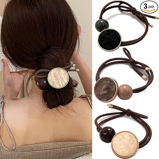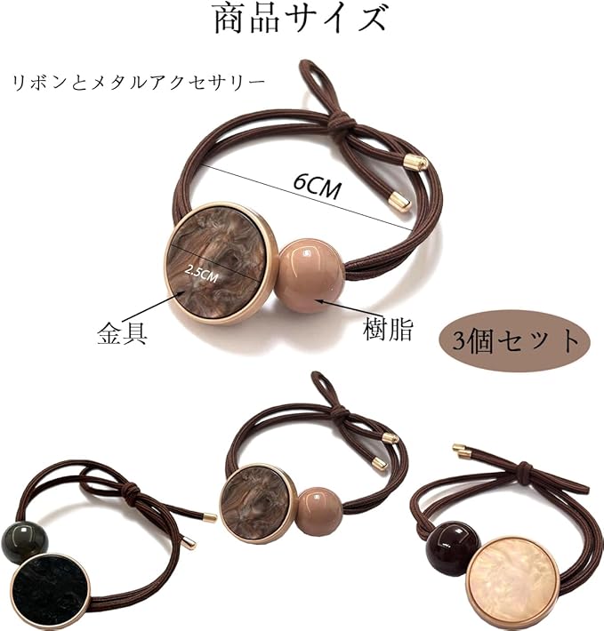 ✿【商品詳細】:お団子 ヘアゴム3個セット。色:アンズ、カレー、ブラック。サイズ:直径約5.5 cm、重量:約8 g、材質:ゴム+メタル。